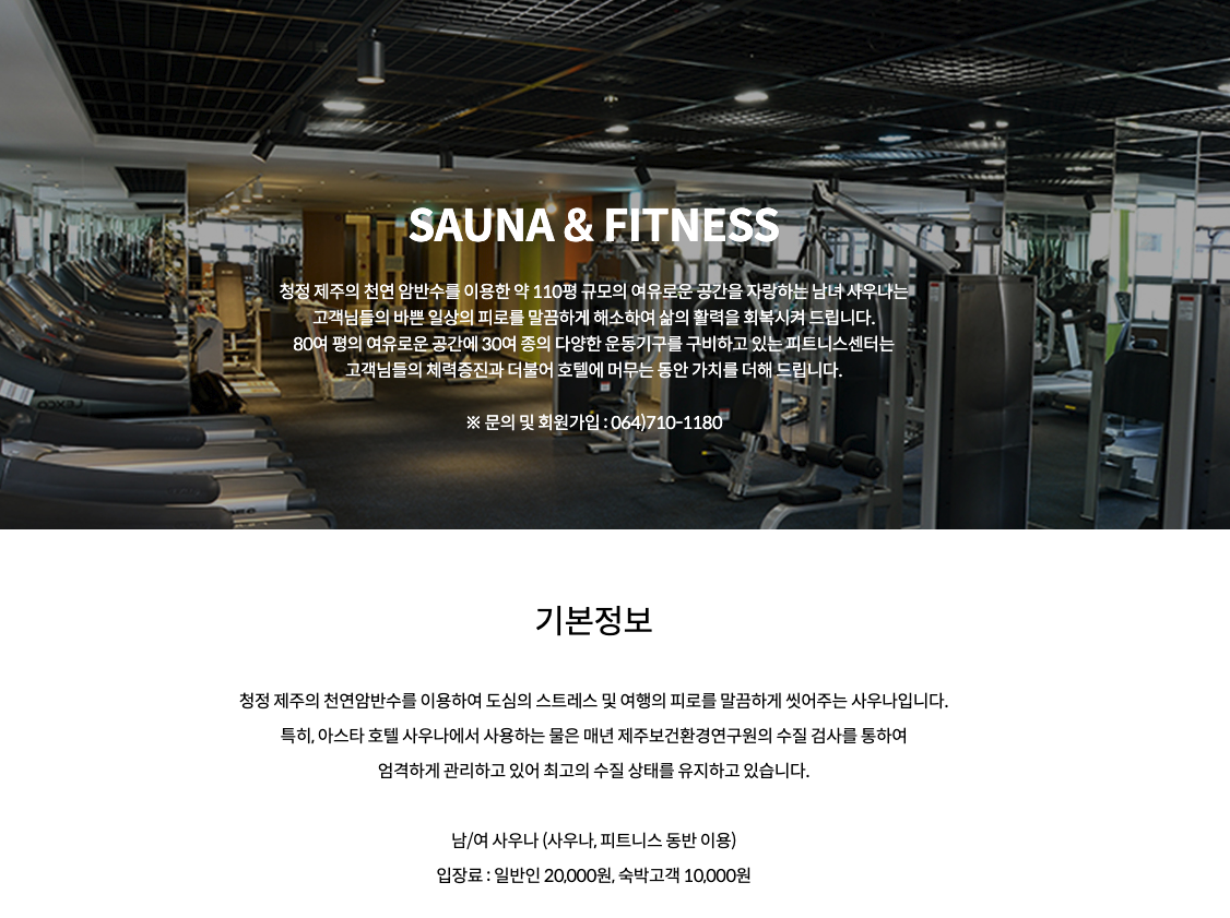 소노벨 제주 | 부대시설 | 사우나│피트니스 | 소노호텔앤리조트