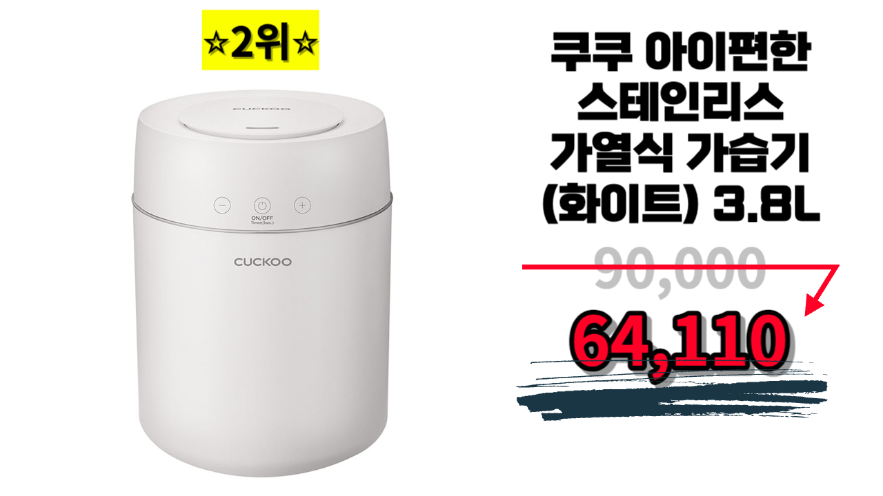 2위는 쿠쿠의 아이편한 스테인리스 가습기입니다.